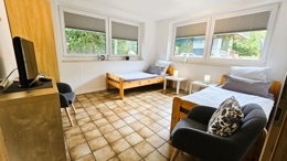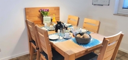 | Ausstattung | Bügelbrett, Bügeleisen, Cerankochfeld, Dunstabzugshaube, Fön, Garten, Gartenmöbel, Geschirr, Geschirrspülmaschine, Grill, Herd-mit-Backofen, Kaffeemaschine, Kühl-/Gefrierkombination, Mikrowelle, Spüle, Staubsauger, Toaster, TV, Wasserkocher | Mitbenutzung | Waschmaschine, Garten |